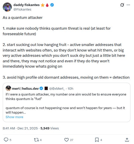 -The quantum computing as risk to Bitcoin topic continues to generate a lot of discussion, example below c/o @Fiskantes and @0xMert_: