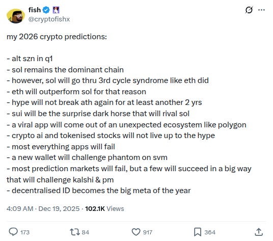 -More interesting 2026 predictions, from Trader Joe co-founder @cryptofishx: