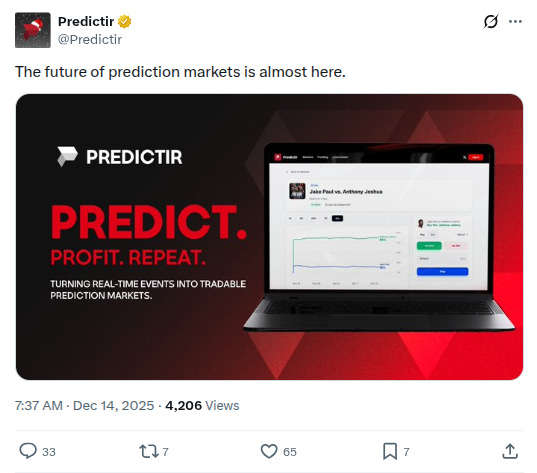-New project called @Predictir. Twitter bio states “Predict. Profit. Repeat.” Followed by 3 of our mutuals. h/t @AresLabs_xyz: