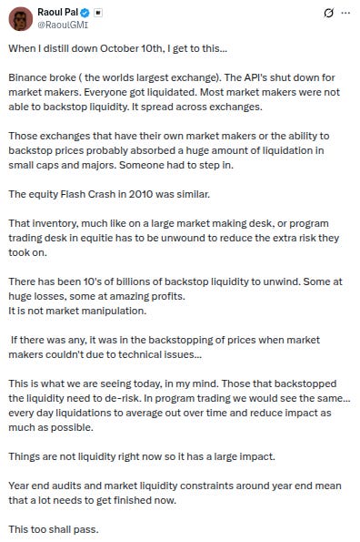 -More thoughts on 10/10 from @RaoulGMI, ending with: “Year end audits and market liquidity constraints around year end mean that a lot needs to get finished now. This too shall pass.”