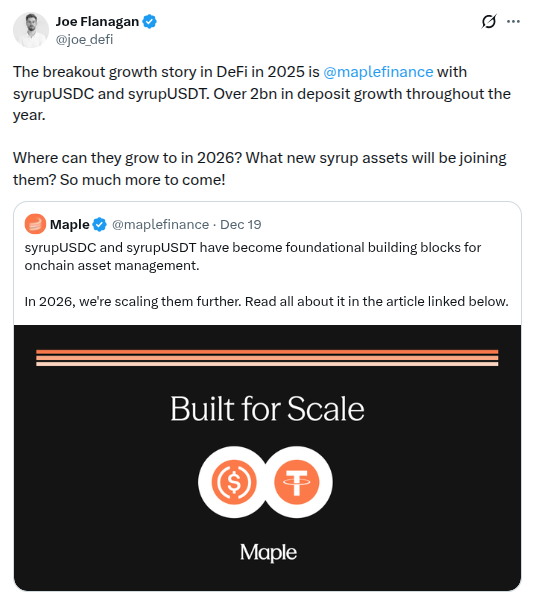 2025 was a massively bullish for year for @maplefinance, for all its various metrics (see great chart from @defi_naly below!), and especially for its assets $syrupUSDC and $syrupUSDT!