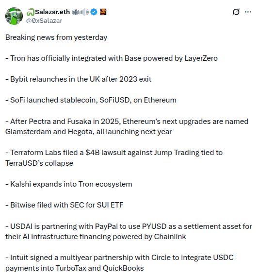 -Bybit is relaunching in the UK after a multi-year pause, h/t this and other headlines from @0xSalazar: