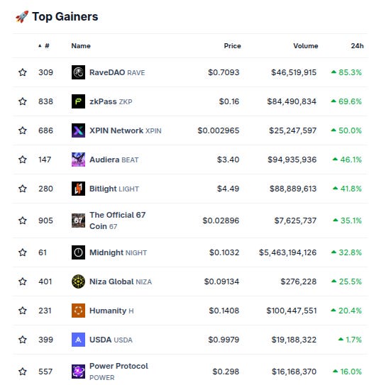 (From @coingecko top 1000, by 24 hour change)