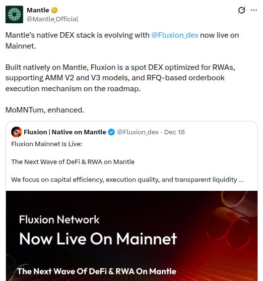 “Mantle’s native DEX stack is evolving with @Fluxion_dex now live on Mainnet.