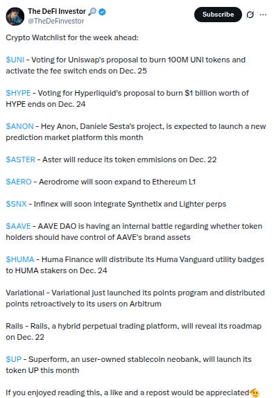 -Variational has officially launched its points program and the Hyperliquid vote on burning tokens ends on December 24th, h/t these and other headlines from @TheDeFinvestor: