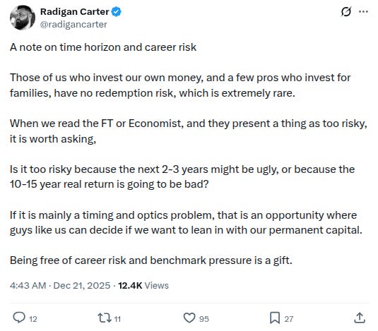 -Reminder that if you are investing your own money you have an in-built advantage vs those who are not, h/t @radigancarter: