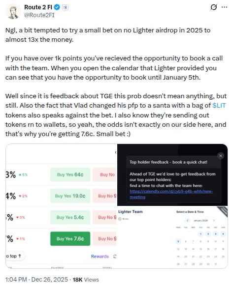 -Lots of focus and speculation regarding the upcoming @Lighter_XYZ airdrop, h/t example below from @Route2FI: