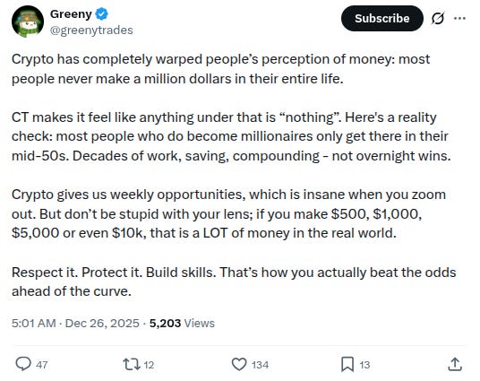 -“Crypto gives us weekly opportunities, which is insane when you zoom out... Respect it. Protect it. Build skills. That’s how you actually beat the odds ahead of the curve.” - parting wisdom from @greenytrades: