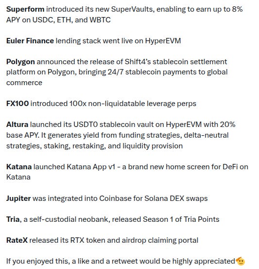 (note: this includes new projects we find through combing Twitter each day and going through newly launched protocols added by @DefiLlama, limited primarily to new projects that have at least some TVL or are followed by at least some of our mutuals… Disclaimer: these are not pre-vetted by us so make sure to DYOR!)