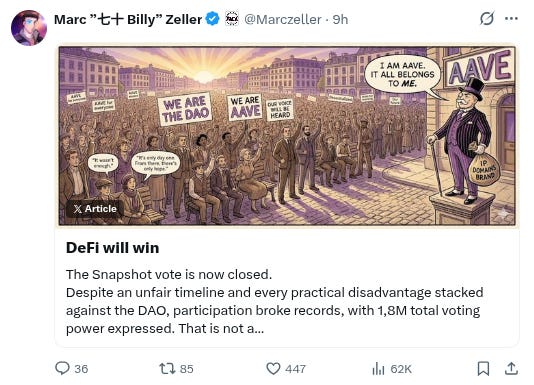 -The Aave saga continues, new article from @Marczeller below (and of course check Stani’s TL for his perspective too if you are interested in all of this):