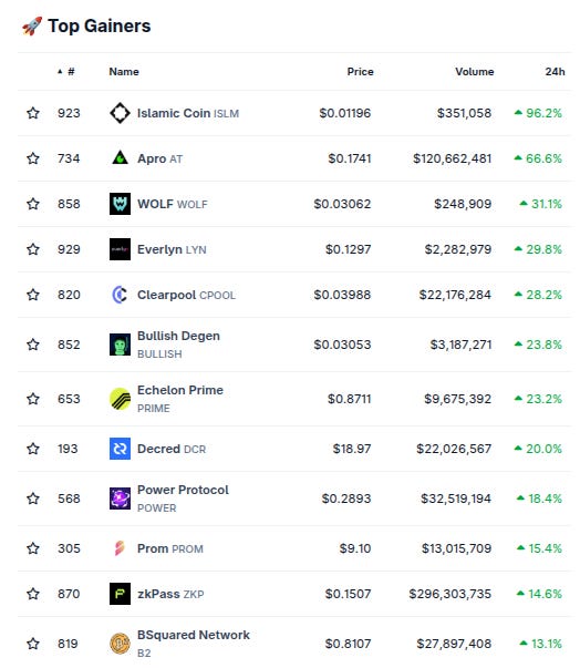 (From @coingecko top 1000, by 24 hour change)