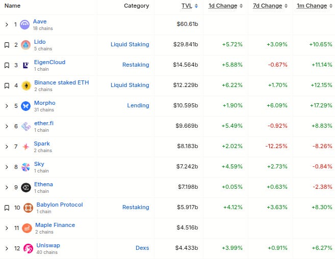 Here’s The Top 12 Protocols By TVL (from @DefiLlama):