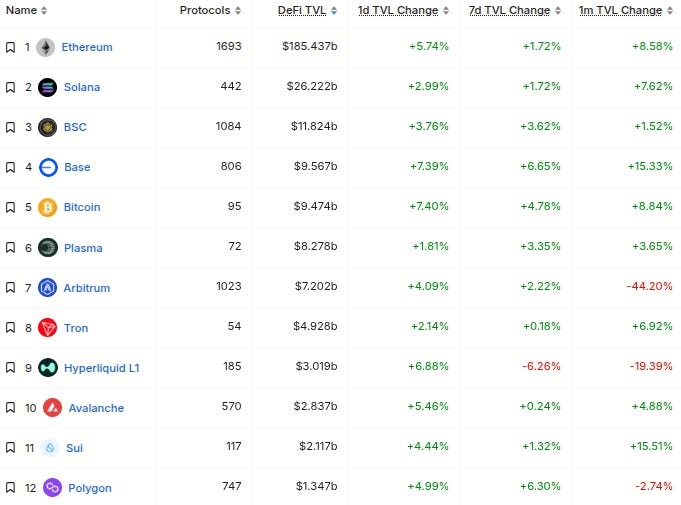 Here’s The Top 12 Chains By TVL (from @DefiLlama):