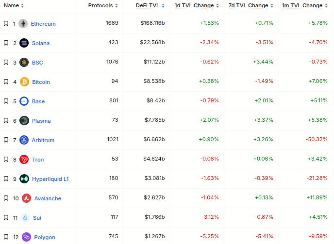 Here’s The Top 12 Chains By TVL (from @DefiLlama):