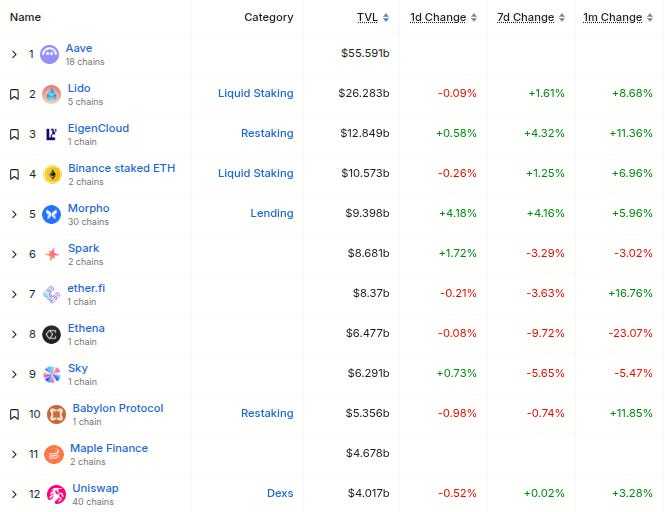 Here’s The Top 12 Protocols By TVL (from @DefiLlama):