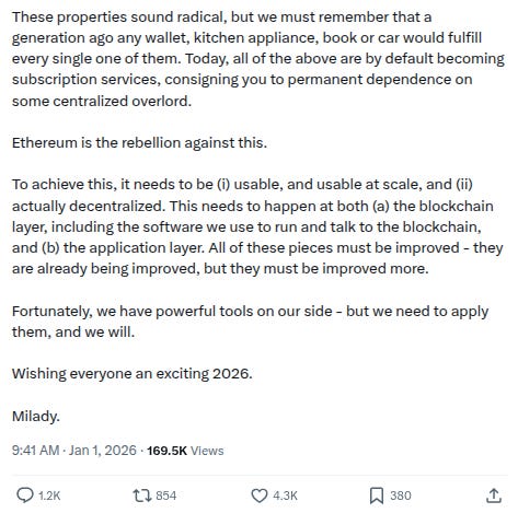 -“Ethereum needs to do more to meet its own stated goals… To build the world computer that serves as a central infrastructure piece of a more free and open internet…” - from new thoughts from Vitalik, below: