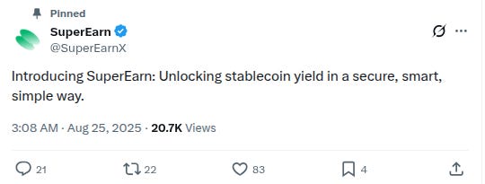 -Something new called @SuperEarnX has been added to @DefiLlama, categorized as a yield protocol on Kaia chain. Twitter bio states “Earn like a Pro. Secure, Smart, Simple.” Followed by 2 of our mutuals and according to @DefiLlama has $3.8M TVL: