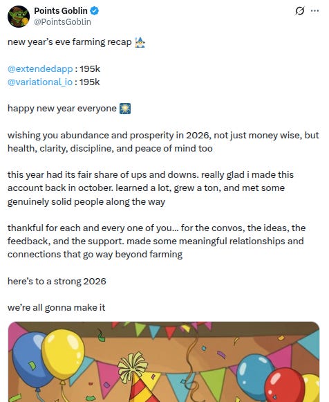 -Now that the Lighter airdrop has taken place, @variational_io and @extendedapp look to be two of the most popular tokenless perps dex’s with prospective airdrops, h/t @PointsGoblin (good new account we just found - make sure to give him a follow!):