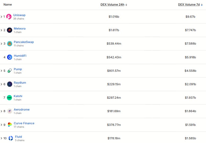 Here’s The Top 10 Dex’s By 7 Day Volume (from @DefiLlama):