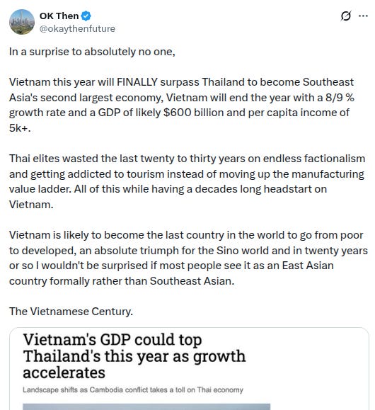 -Vietnam is surpassing Thailand to become southeast Asia’s second-largest economy (note: Frog has no opinion on this but found it interesting from a macro standpoint):