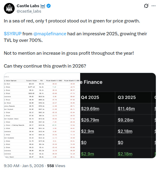 And check out the tweet below that from @castle_labs on Maple’s huge growth in 2025!