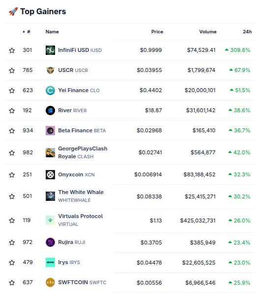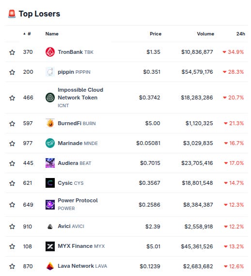(From @coingecko top 1000, by 24 hour change)