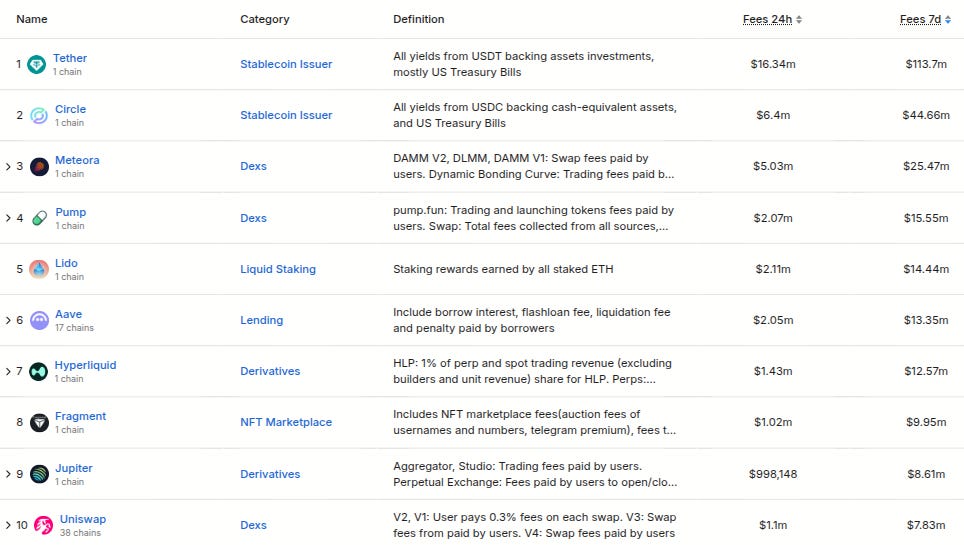Here’s The Top 10 Project By 7 Day Fee Generation (from @DefiLlama):