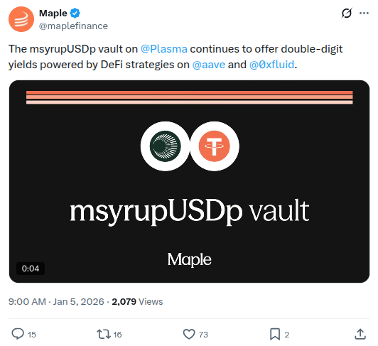 Regarding the latter, make sure to check out the double digit APY’s available via the msyrupUSDp vault on @Plasma, which continues to offer juicy yields powered by defi strategies involving @aave and @0xfluid!