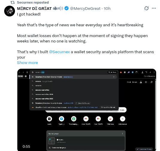 -Something new called @Securnex. Twitter bio states “Securnex is a security focused platform built to help users identify risks, verify on-chain activity, and make safer decisions in the crypto ecosystem.” Followed by 2 of our mutuals. h/t @0xvietnguyen and @MercyDeGreat: