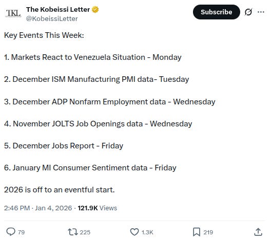 -ISM data and December jobs report coming out this week, h/t @KobeissiLetter: